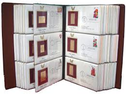 Subscription cover collections have little value. These were marketed in magazines and by direct mail by companies such as Franklin Mint, Collectors' Society, and others and sold on a subscription basis. They are usually in thick and heavy plastic books. They have little resale value and are best given away to classroom teachers, Boy & Girl Scout troops, or charitable organizations. We do not buy them.
